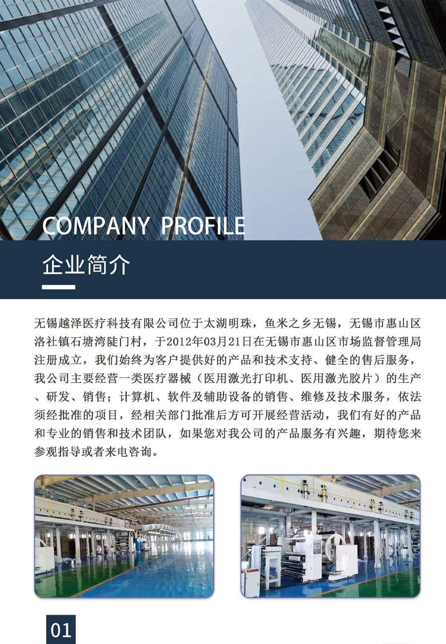 無錫越澤醫(yī)療科技有限公司,成立于2012年3月,是一家集研發(fā)、整合、推廣于一體的生產(chǎn)型企業(yè),位于美麗的“太湖明珠”江蘇無錫。目前主營醫(yī)學影像打印系統(tǒng):醫(yī)用放射膠片、醫(yī)用B超膠片、醫(yī)用彩超膠片、醫(yī)用CT膠片 、醫(yī)用膠片、醫(yī)用激光膠片、醫(yī)用噴墨膠片、藍基膠片、超聲自助打印系統(tǒng)、彩超圖文報告等。