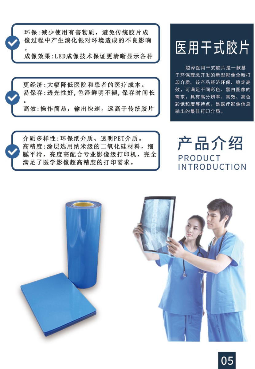 YZ醫(yī)用膠片是一款基于環(huán)保理念開發(fā)的新型影像全新打印介質。該產(chǎn)品經(jīng)濟環(huán)保、穩(wěn)定高效,可滿足不同彩色、黑白圖像的需求,具有高分辨率、高效、高色彩飽和度等特點。是醫(yī)療影像信息輸出的更佳打印介質。目前已廣泛應用于超聲科、婦產(chǎn)科、眼底、喉鏡、胃鏡、腸鏡、陰道鏡以及放射科等各大科室,是臨床醫(yī)學影像成像的更佳選擇。